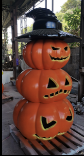 Giant Fiberglass Witch Hat Pumpkin Stack Trio