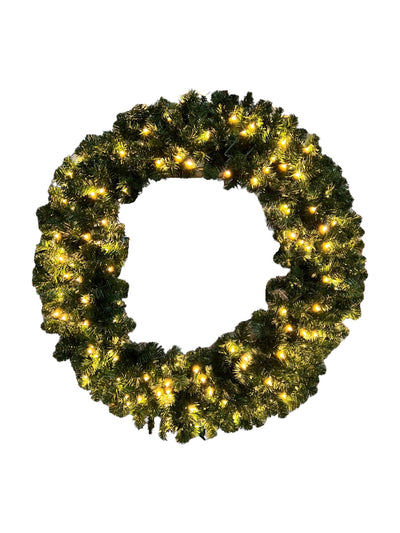 Picture of a pre lit ultra bright artificial Christmas wreath