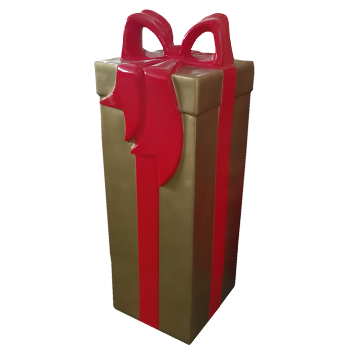 Get in the spirit of the holidays with our Giant Fiberglass Tall Gift Box! Perfect for indoor and outdoor use, this 3D holiday decoration is sure to bring joy to your home or municipality. Made from durable Fiberglass, it's a fun and festive addition to any holiday display. Give the gift of holiday cheer with this unique and eye-catching decoration!