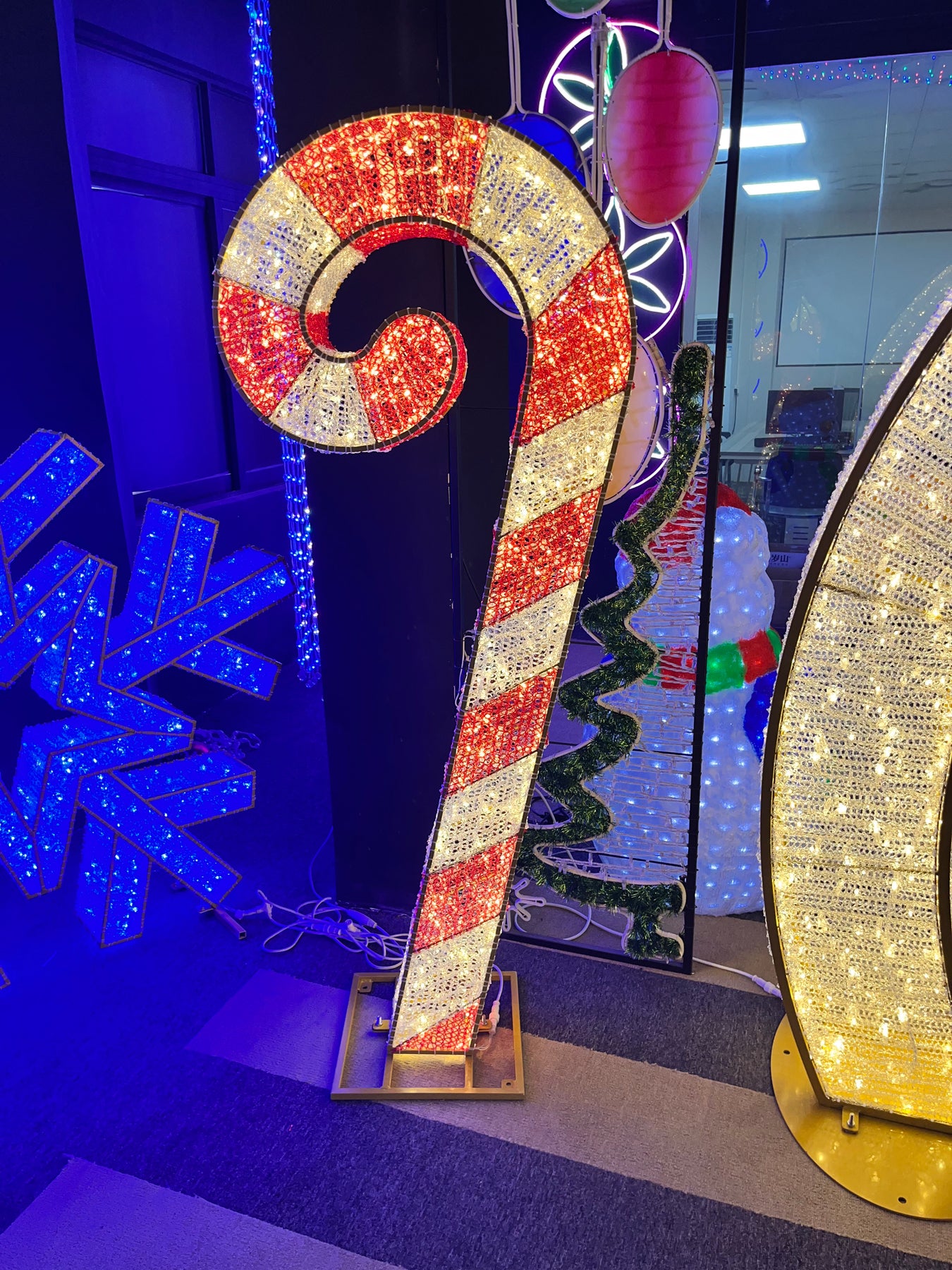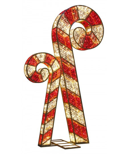 Create a stunning winter scene with the Giant Pair of Pre-Lit LED Candy Canes. These impressive candy canes are equipped with a metal frame and LED string lights for a brilliant display that is great for municipalities and commercial holiday decorations. The pair includes a 6.56 FT and 3.93 FT candy cane, both with waterproof IP65 protection and 1.5m power cords for easy setup. Make a statement this season with this eye-catching outdoor or indoor holiday decoration.