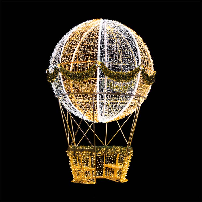 Experience the awe-inspiring beauty of a hot air balloon with the Giant Pre-Lit LED Garland Adorned Hot Air Balloon. Perfect for any indoor or outdoor space, this stunning and attention-grabbing display features festive and playful LED Christmas lights. Ideal for municipal and commercial areas, it adds a quirky and charming touch to any environment.