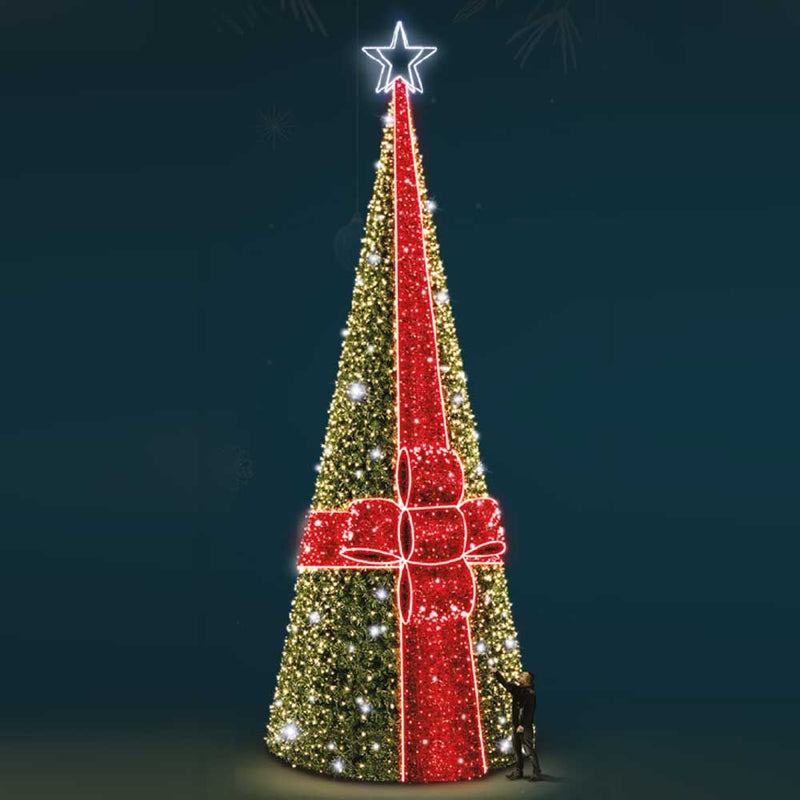 Ignite your holiday spirit with our Giant Pre-Lit LED Gift Wrap Tree. This majestic, impressive tree adds a sprinkle of magic to any indoor or outdoor environment, thanks to its dazzling LED lights. Be the star of the show this Christmas with this extraordinary addition to commercial displays or municipalities. Get ready for the excitement and awe it will generate!