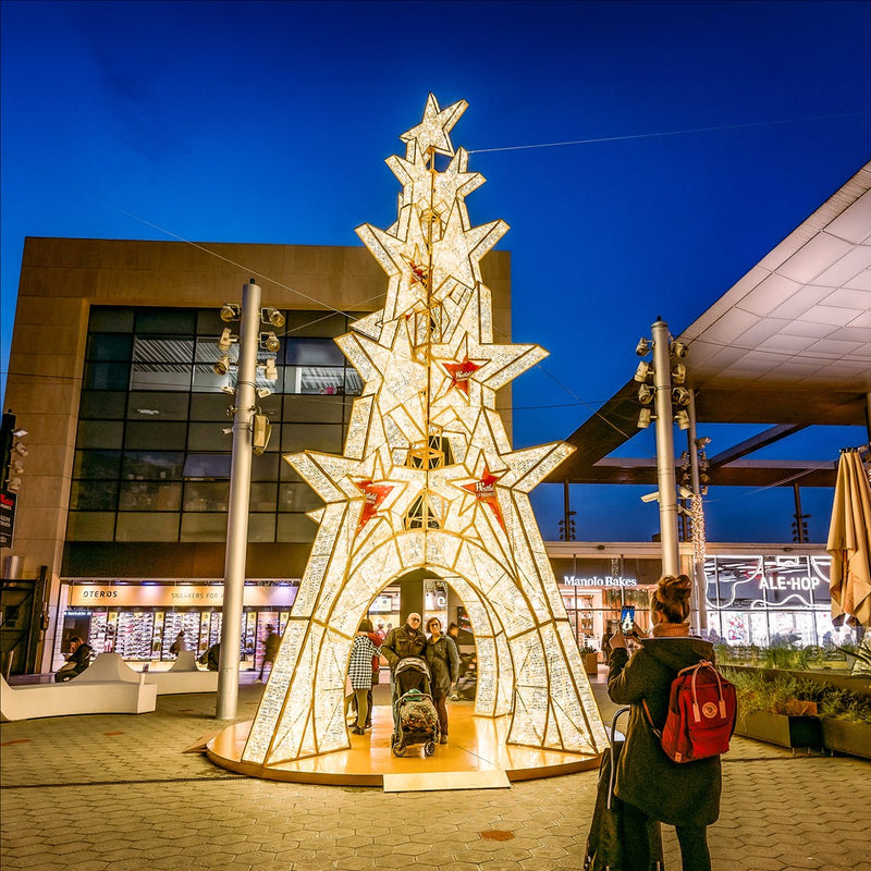 Experience the enchantment of the holiday season with our fabulous Giant Pre-Lit LED Stacked Star Tree. This stunning tree will mesmerize both indoor and outdoor spaces with its sparkling LED lights. Elevate your festive atmosphere with this extraordinary masterpiece, perfect for sophisticated municipal locations. Let its radiance captivate and delight you. A must-have for any commercial and public displays.