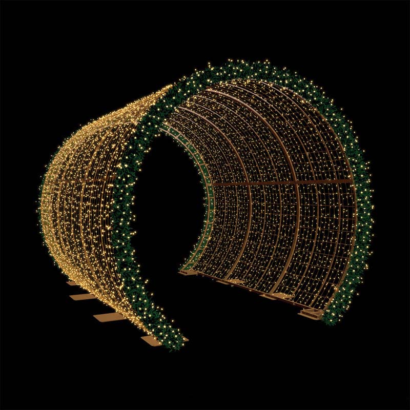 Step boldly into the magic of the season with our Giant Pre-Lit LED Walk-Through Festive Tunnel! This show-stopping structure is perfect for adding a touch of excitement to any commercial or city center display. Its durable metal frame and outdoor-rated LED mini lights will create an unforgettable glow, making it the perfect holiday or event photo backdrop for your commercial or municipal property. Let this tunnel be the daring centerpiece of your indoor or outdoor holiday display!