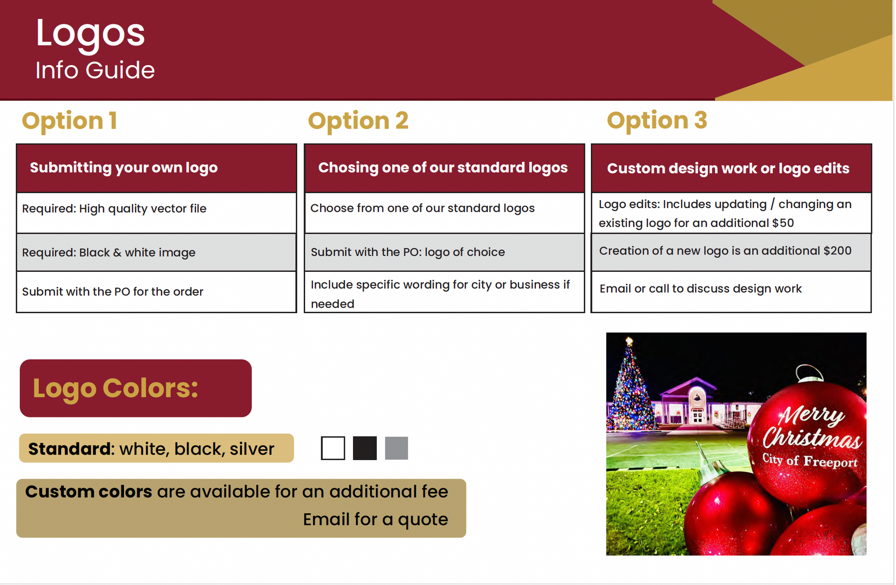 Want to showcase your city, school, or business logo? Add full-color branding to any size. Perfect for sponsorships, parades, or branded winter events.