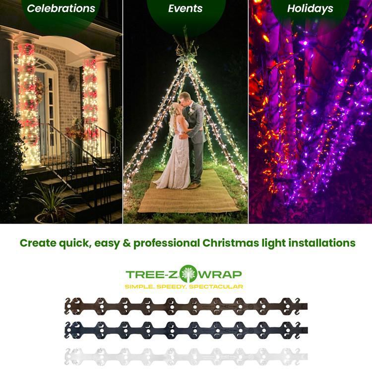 Transform your tree, column, or railing lighting installations with the TREE-Z® Wrap, the professional’s choice for speed, precision, and protection. Designed for effortless installation, this reusable strip keeps your lights evenly spaced and securely fastened without harming bark, paint, or surfaces.